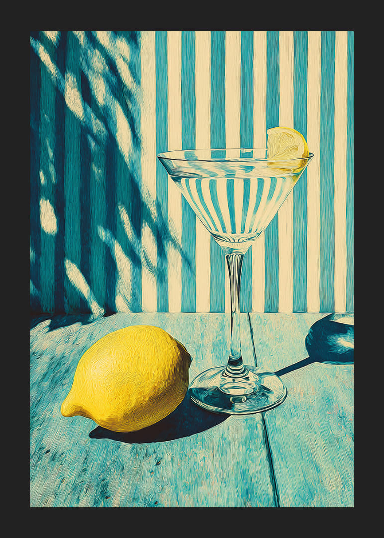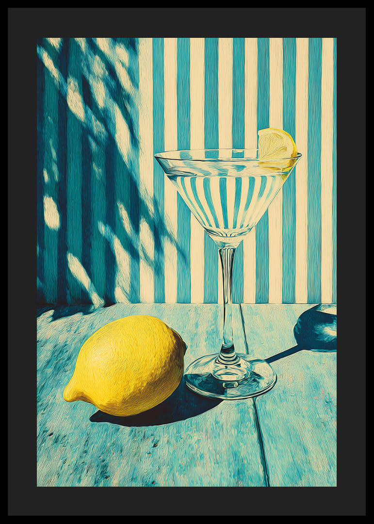 Avec ses rayures distinctives et sa tranche de citron rafraîchissante, cette affiche attire immédiatement le regard. Le fond bleu et blanc crée un contraste harmonieux avec le jaune ensoleillé du citron, insufflant à la pièce une sensation de fraîcheur estivale. Idéale pour égayer la cuisine ou le salon, cette affiche apporte une touche rétro et un charme vibrant, sublimant l'atmosphère avec style et élégance.