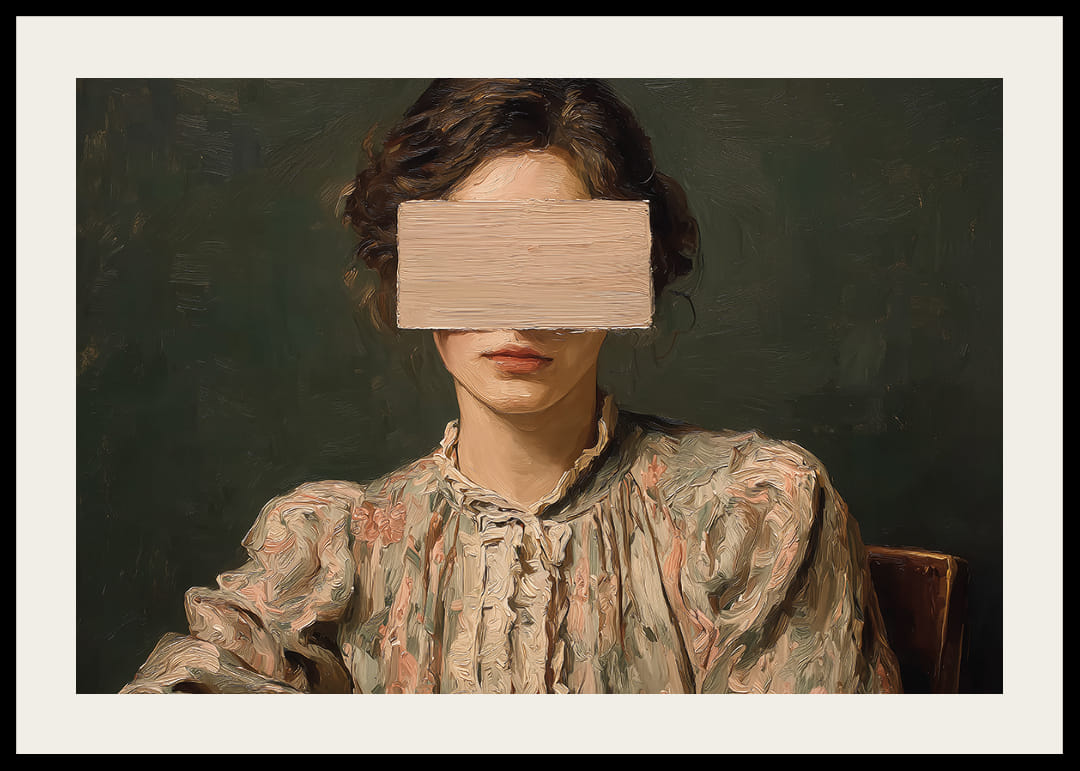Cette affiche captive l'attention avec le portrait d'une femme mystérieuse dont le visage est partiellement dissimulé par une surface plane. L'association de couleurs douces et discrètes et d'une expression énigmatique éveille la curiosité et crée une impression de profondeur. L'affiche devient un sujet de conversation captivant et confère à la pièce une atmosphère sophistiquée et stimulante, propice à la réflexion et à l'imagination.