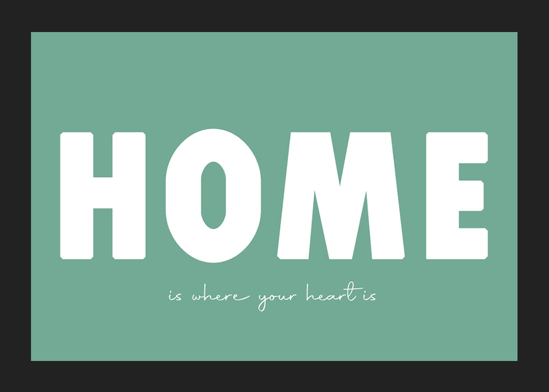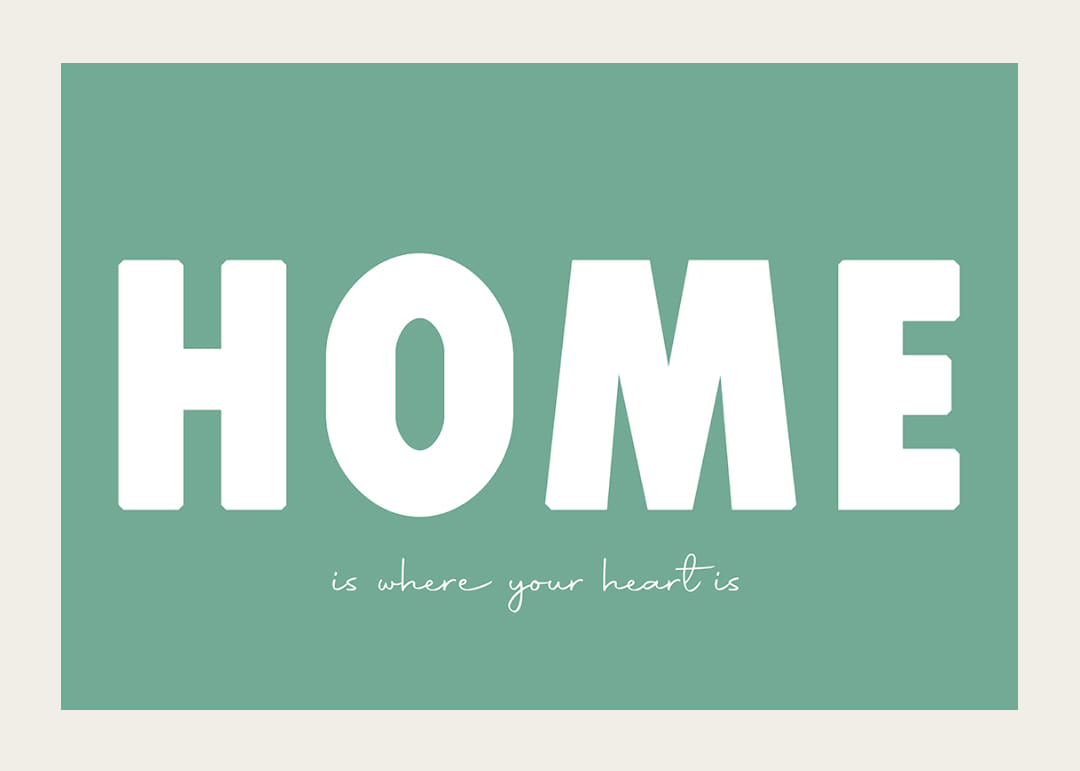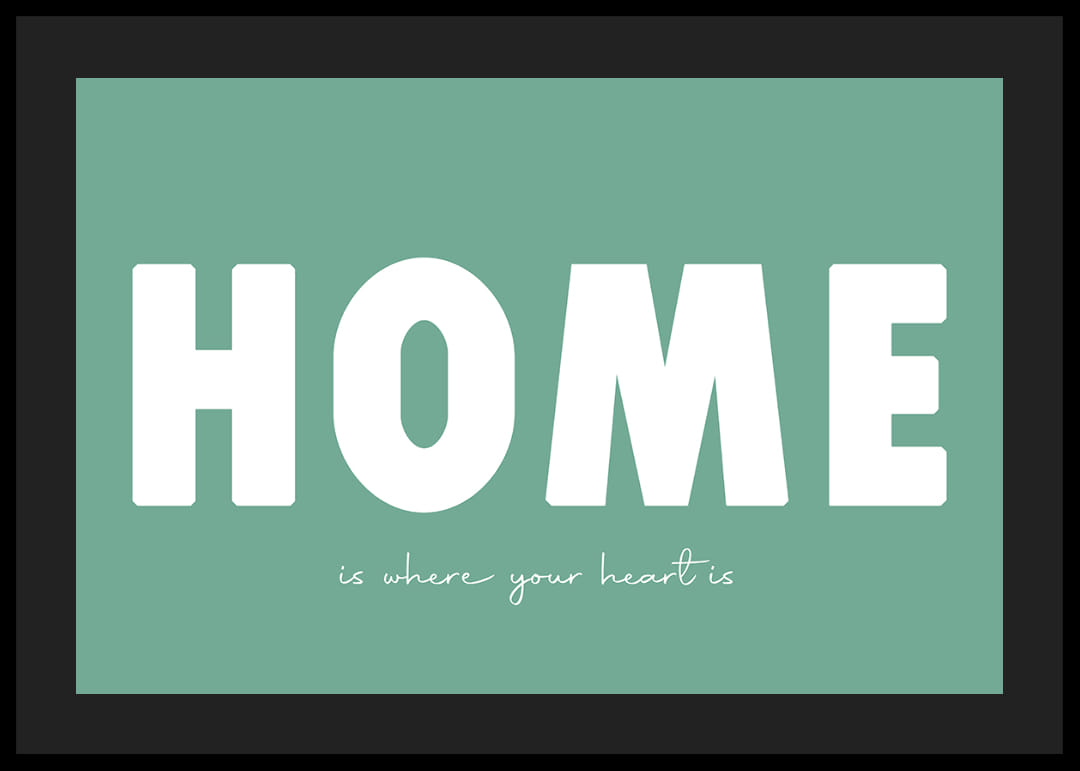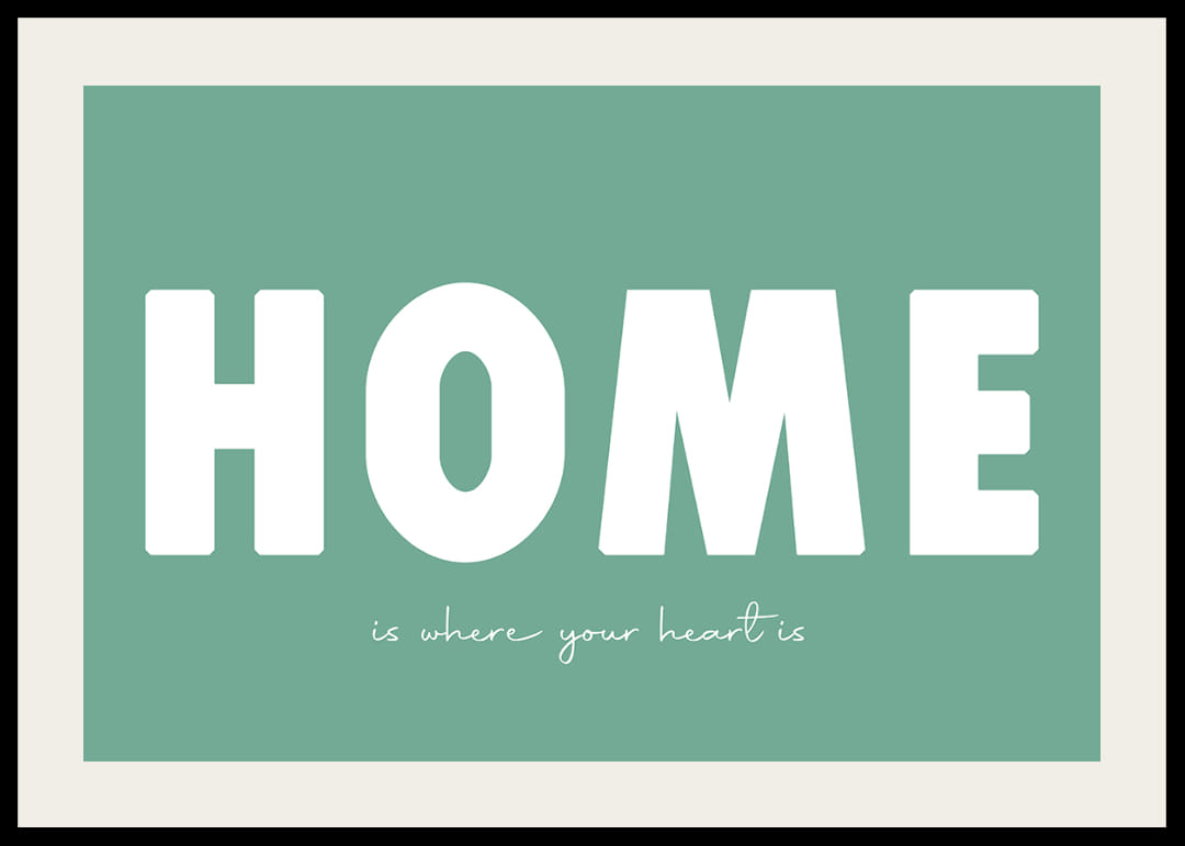 Cette affiche diffuse immédiatement une sensation de chaleur et de confort grâce à son message simple mais percutant. Le fond vert procure une sensation d'apaisement tandis que les grandes lettres confèrent une profondeur émotionnelle touchante. L'affiche est idéale pour mettre en valeur le cœur de la maison et créer une atmosphère accueillante qui rappelle l'importance du foyer. Un élément de décoration intemporel pour n'importe quelle pièce.