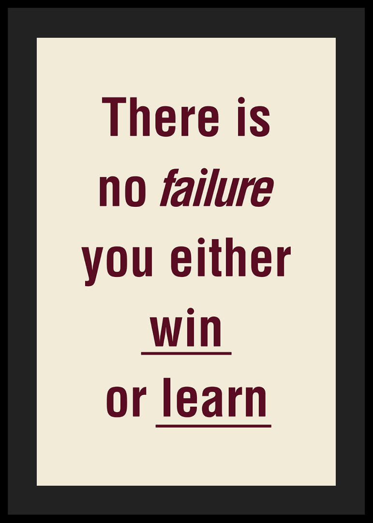 Cette affiche capture l'essence du développement personnel grâce à son message fort et encourageant. Sa typographie élégante transmet un sentiment de détermination et d'espoir. Avec ses lettres audacieuses, elle crée une atmosphère inspirante dans n'importe quelle pièce, nous rappelant que nous avons toujours la possibilité d'apprendre et de progresser, quels que soient les obstacles rencontrés. Un détail parfait pour transformer votre maison ou votre bureau.