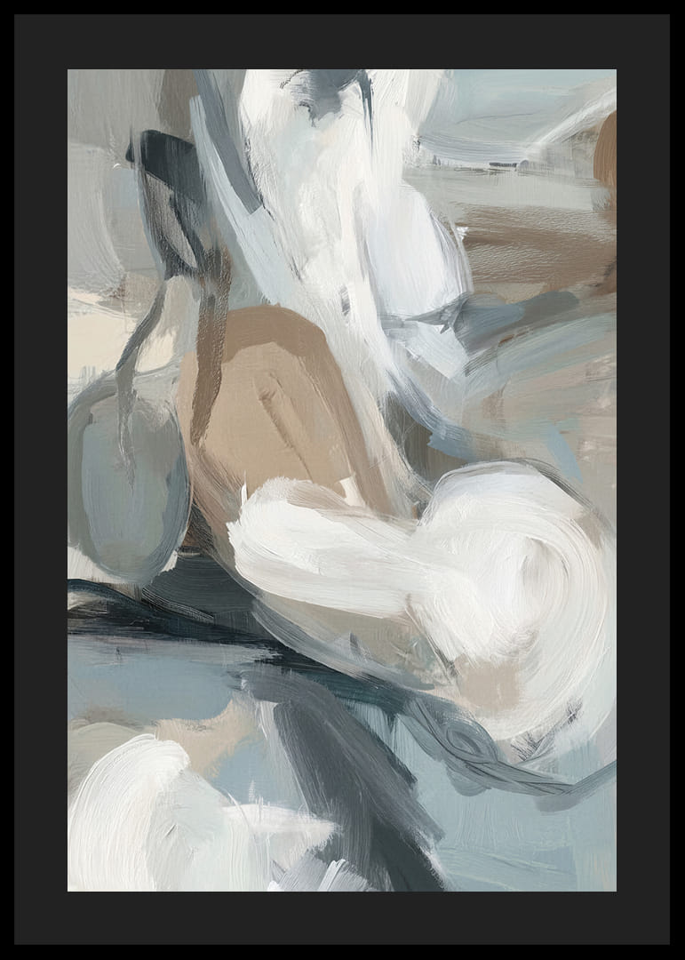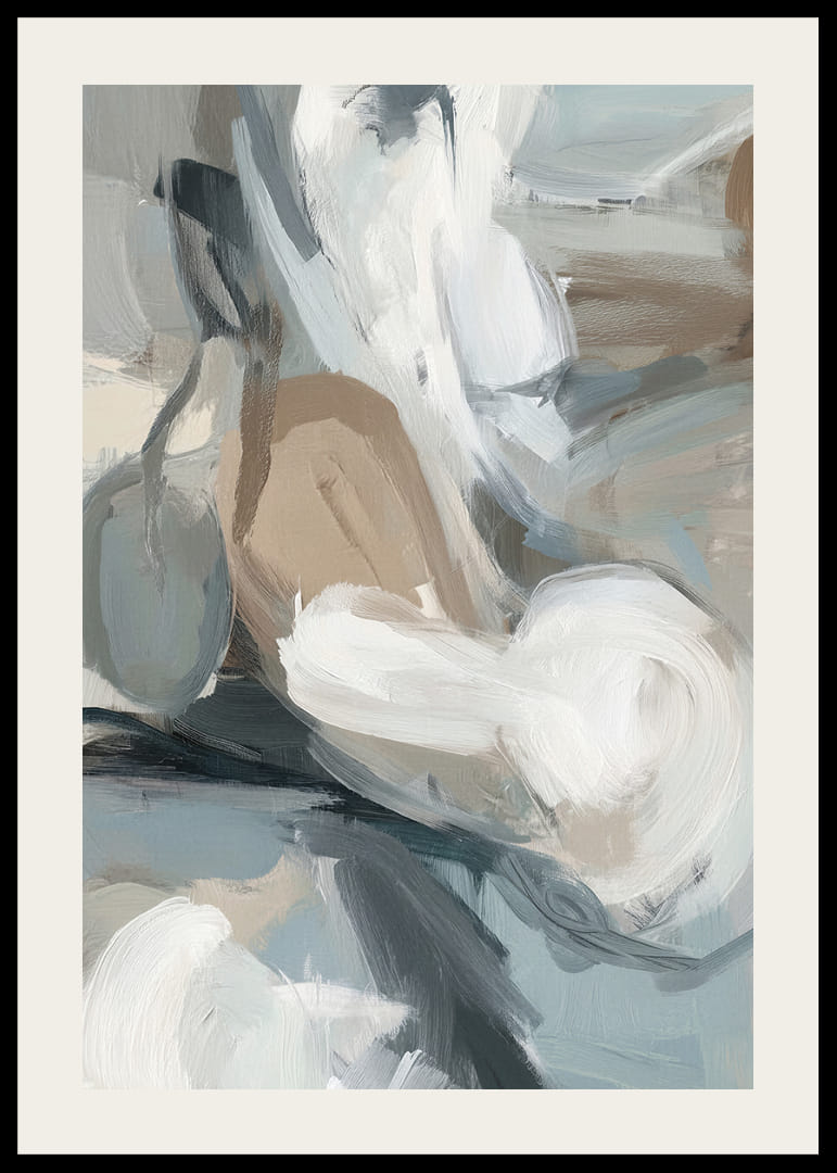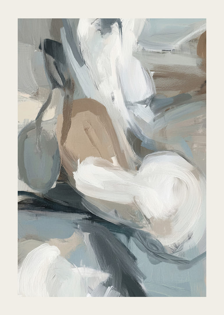 Cette affiche attire le regard par ses doux coups de pinceau aux couleurs naturelles et harmonieuses. Sa forme abstraite invite à la sérénité et à la contemplation, idéale pour ceux qui recherchent l'harmonie au quotidien. Conçue dans une palette de tons apaisants de bleu, de beige et de blanc, elle apporte une élégance discrète à toute pièce. Elle sublime l'atmosphère et invite à un moment de paix et de recueillement.