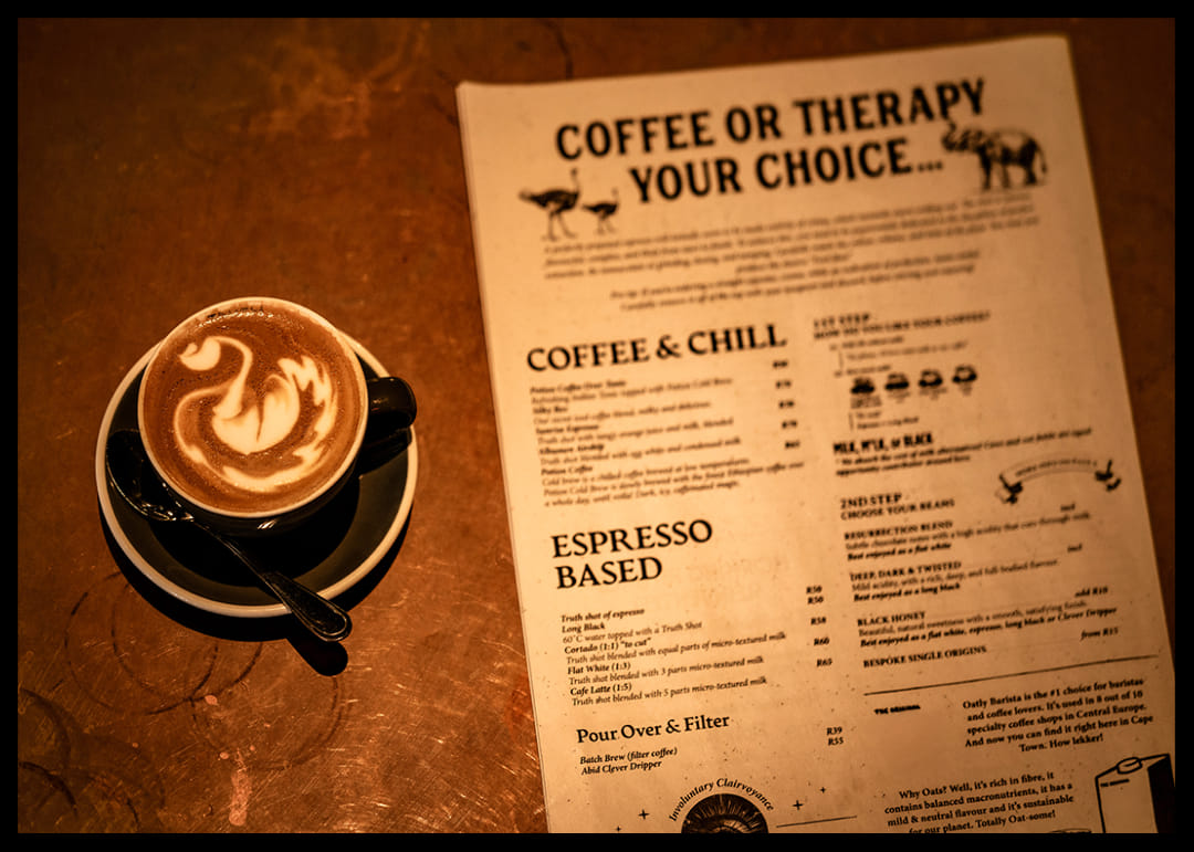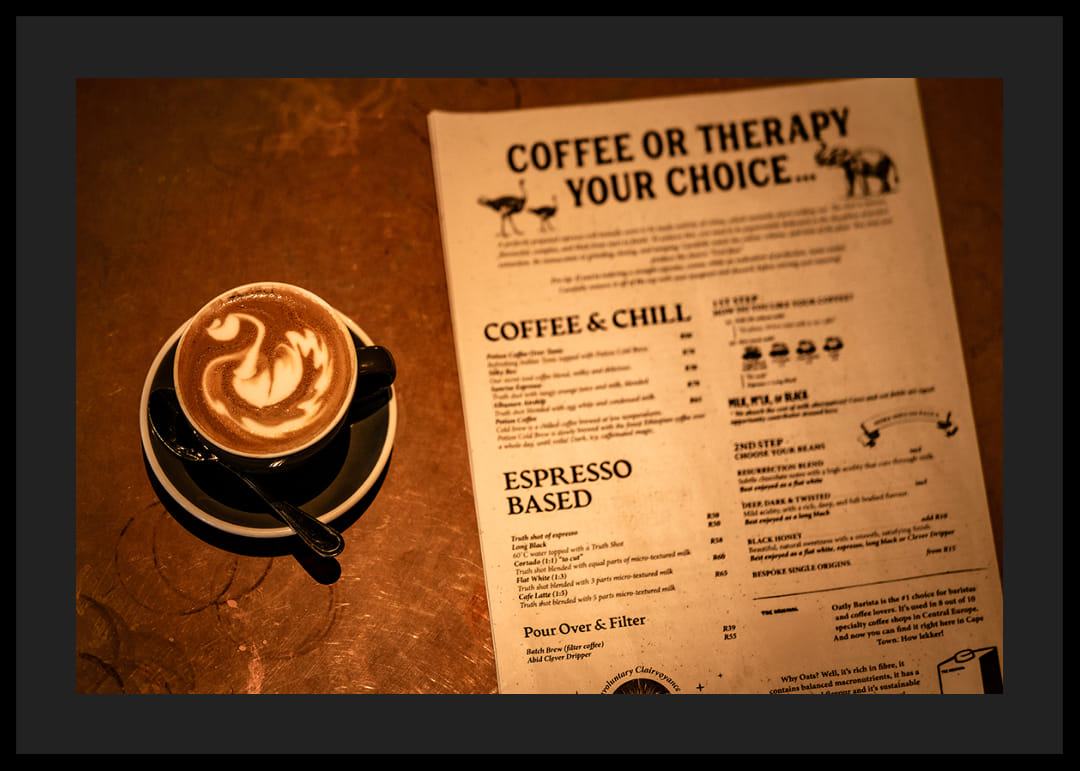 Un moment de douceur offert par TRUTH Coffee Roasting au Cap, où la lumière, les détails et les textures créent une atmosphère de calme, de plaisir et de luxe au quotidien. Une affiche qui célèbre le rituel du café et l'âme du lieu – idéale pour ceux qui souhaitent ajouter une touche chaleureuse, élégante et imprégnée de culture café internationale.