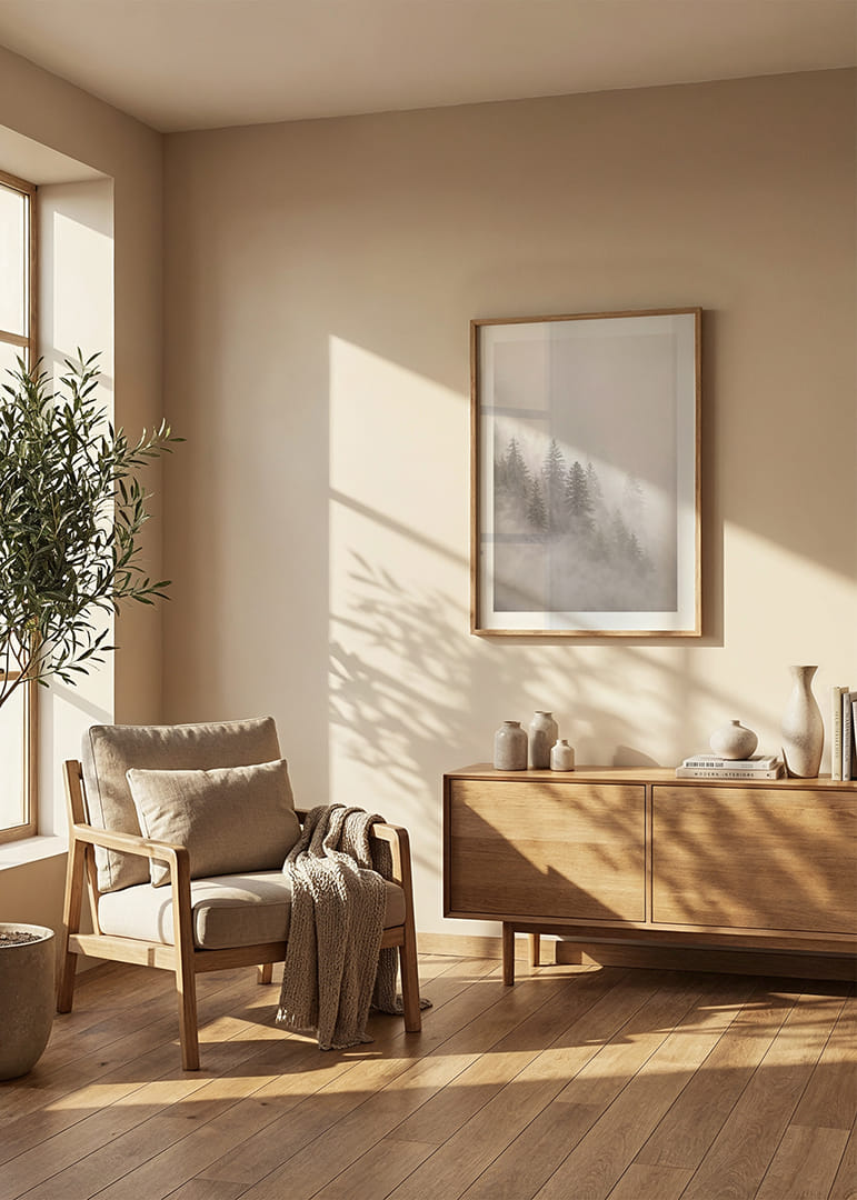 Cette affiche capture l'essence d'une forêt brumeuse où les pins se dressent majestueusement à travers un doux voile de brouillard. L'atmosphère aux tons gris invite au calme et à la contemplation. La brume enveloppe délicatement les grands arbres, créant une ambiance magique, presque onirique. Cette affiche confère à un espace une sensation de tranquillité et la beauté intacte de la nature, propice à la détente.