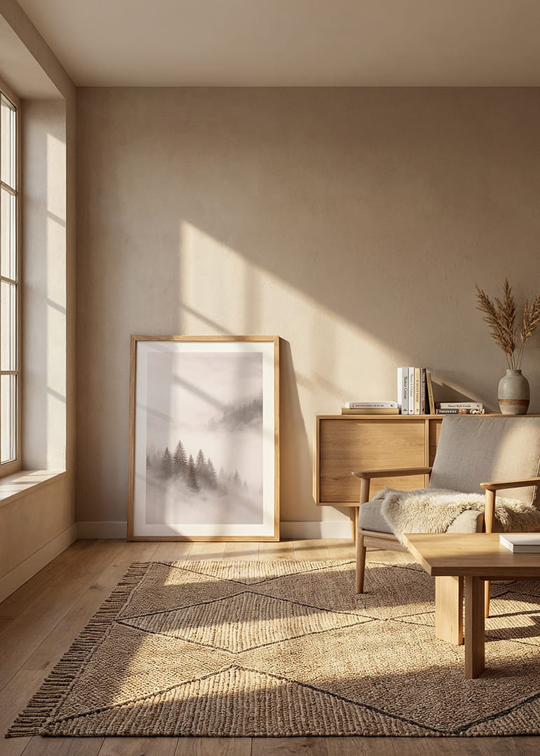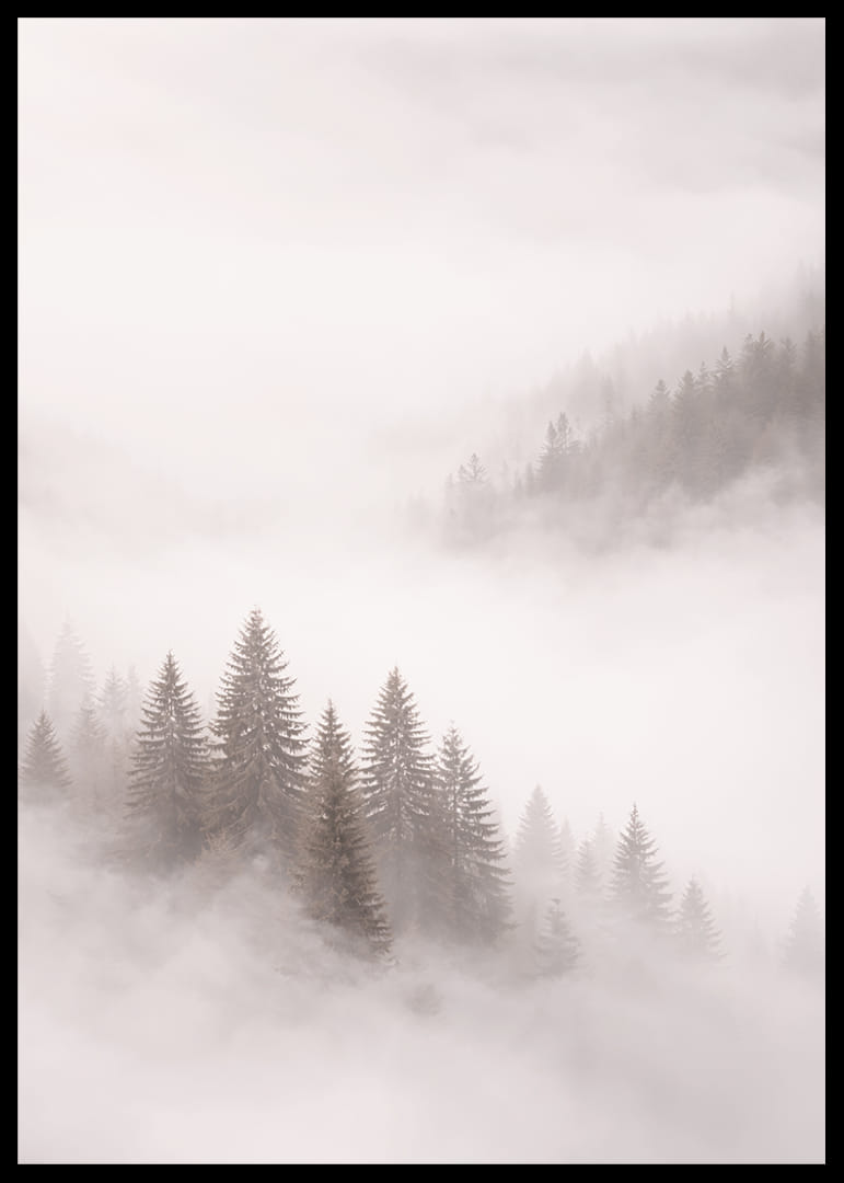 Une affiche enchanteresse où le brouillard enveloppe une forêt de sapins majestueux, créant une atmosphère presque magique. La lumière diffuse instaure une ambiance mystérieuse et donne de la profondeur au paysage. Cette affiche offre un sentiment de calme et d'intemporalité, et ses tons apaisants s'intègrent parfaitement dans n'importe quelle pièce, transformant l'atmosphère en un havre de paix et de rêve.