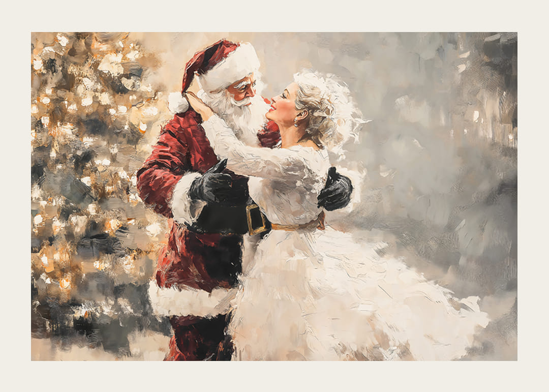 Créez une ambiance de Noël romantique avec cette magnifique affiche où le Père Noël partage une danse magique avec sa bien-aimée à la lueur d'un sapin de Noël étincelant. L'image capture à la fois l'amour et la joie, avec des sourires chaleureux et un sentiment de communauté se répandant dans la pièce. Parfait pour donner à votre maison une touche de romantisme festif, où chaque regard sur l'affiche vous rappelle la magie et la chaleur de Noël.