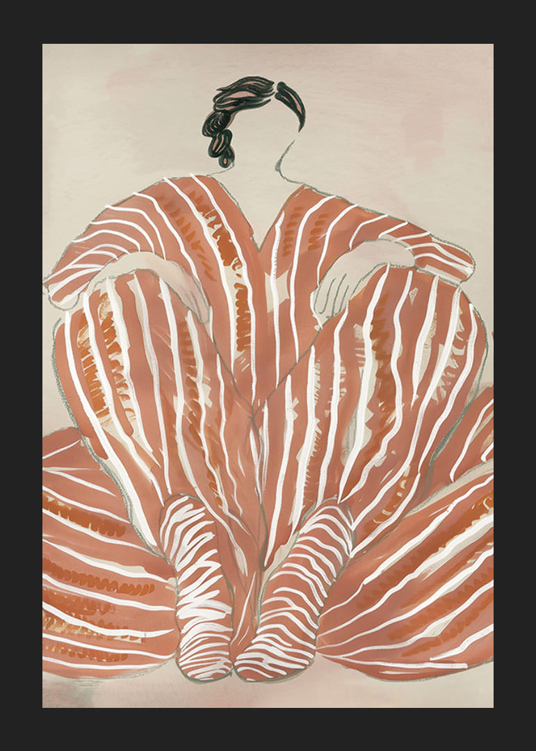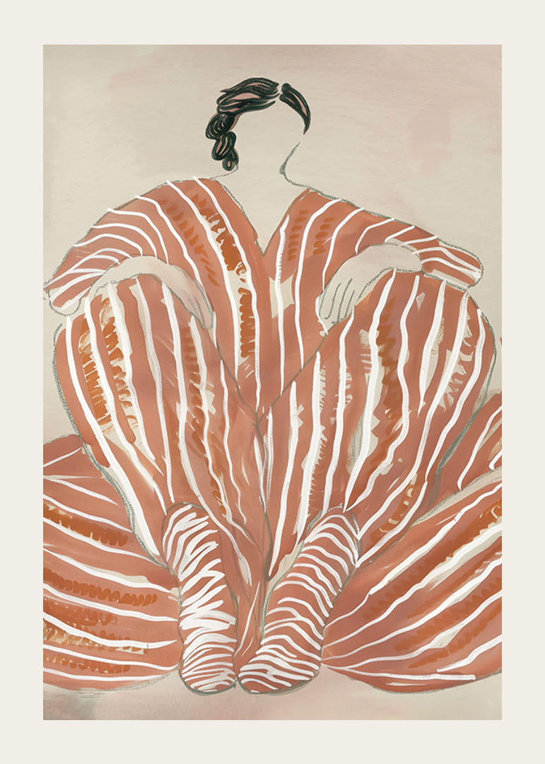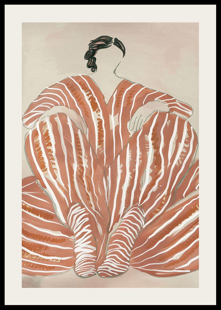 Découvrez la beauté de la simplicité avec cette affiche fascinante. Les lignes douces et fluides de la terre cuite chaleureuse créent un sentiment d'harmonie et d'élégance. Le motif, rappelant une figure portant une robe de rêve, dégage une force tranquille et une grâce intemporelle.