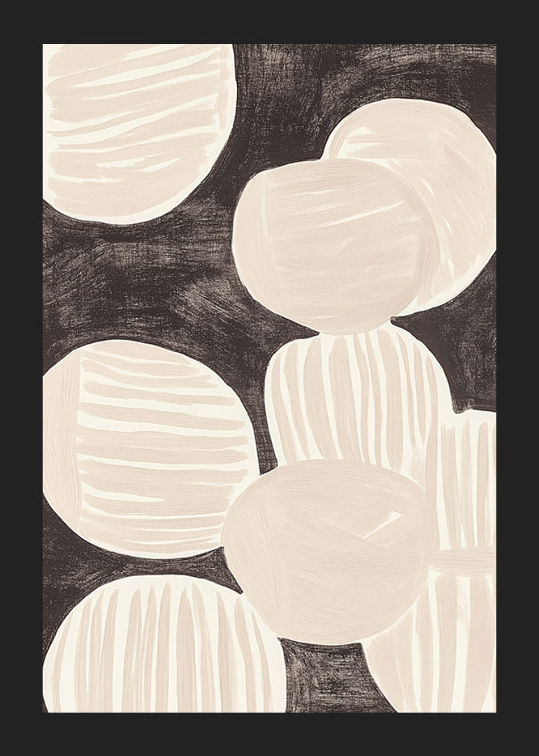 Transformez votre pièce avec cette affiche élégante qui attire le regard par son jeu harmonieux entre des formes légères et douces et un fond profond et contrasté. Les lignes élégantes et la palette de couleurs subtiles créent une sensation de calme.