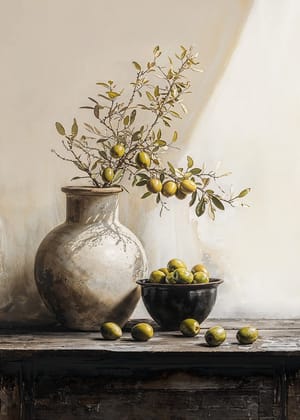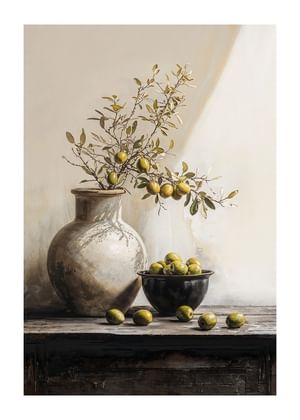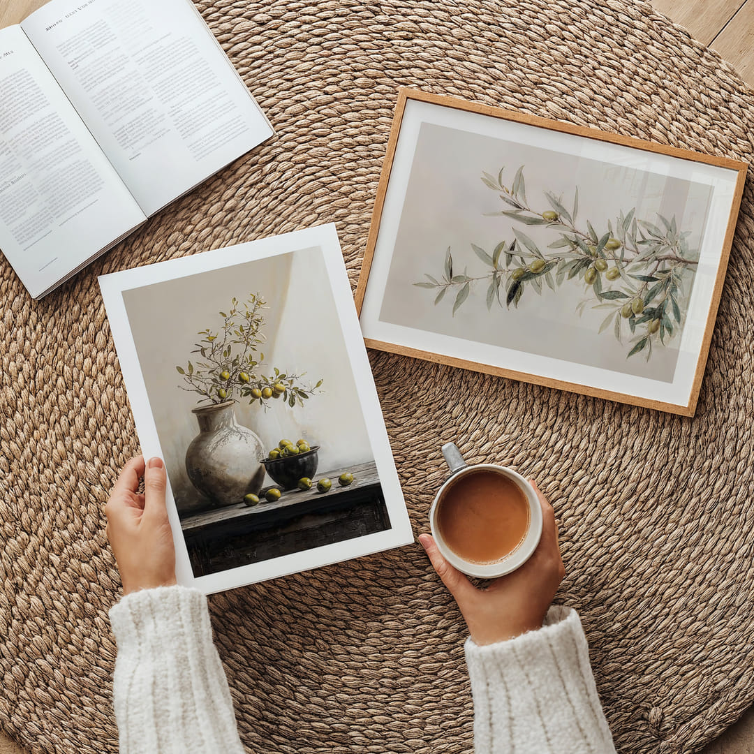 Ces affiches dégagent une impression de paix et d'équilibre grâce à leurs couleurs douces et naturelles et à leurs motifs gracieux de branches d'olivier et de vases. Leur élégante simplicité crée une atmosphère apaisante et chaleureuse. Parfaites pour transformer une pièce en un lieu de détente et de réflexion, où la nature rencontre une expression artistique subtile.