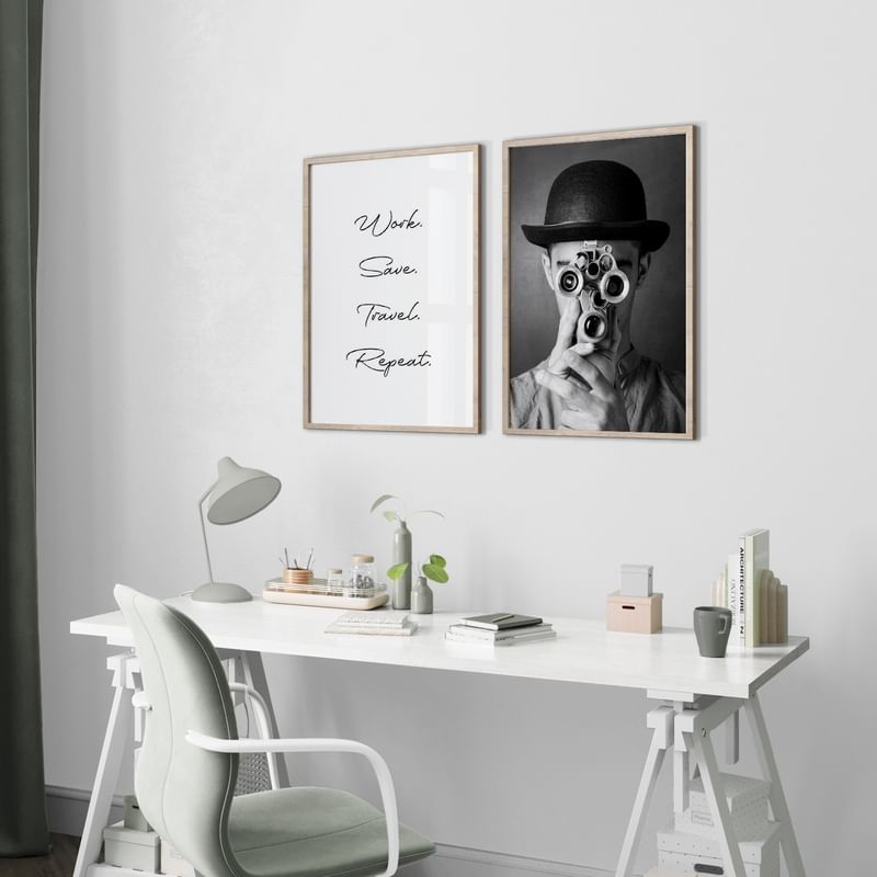 Inspirez-vous de nos murs de galerie pour espace de travail ou le bureau à domicile. Triez par couleur de mur ou par nombre d'affiches et achetez l'intégralité du mur de la galerie ou choisissez les affiches et les cadres spécifiques que vous aimez le plus.