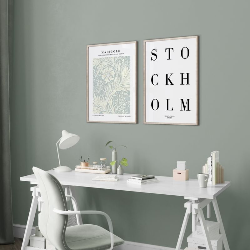 Inspirez-vous de nos murs de galerie pour espace de travail ou le bureau à domicile. Triez par couleur de mur ou par nombre d'affiches et achetez l'intégralité du mur de la galerie ou choisissez les affiches et les cadres spécifiques que vous aimez le plus.