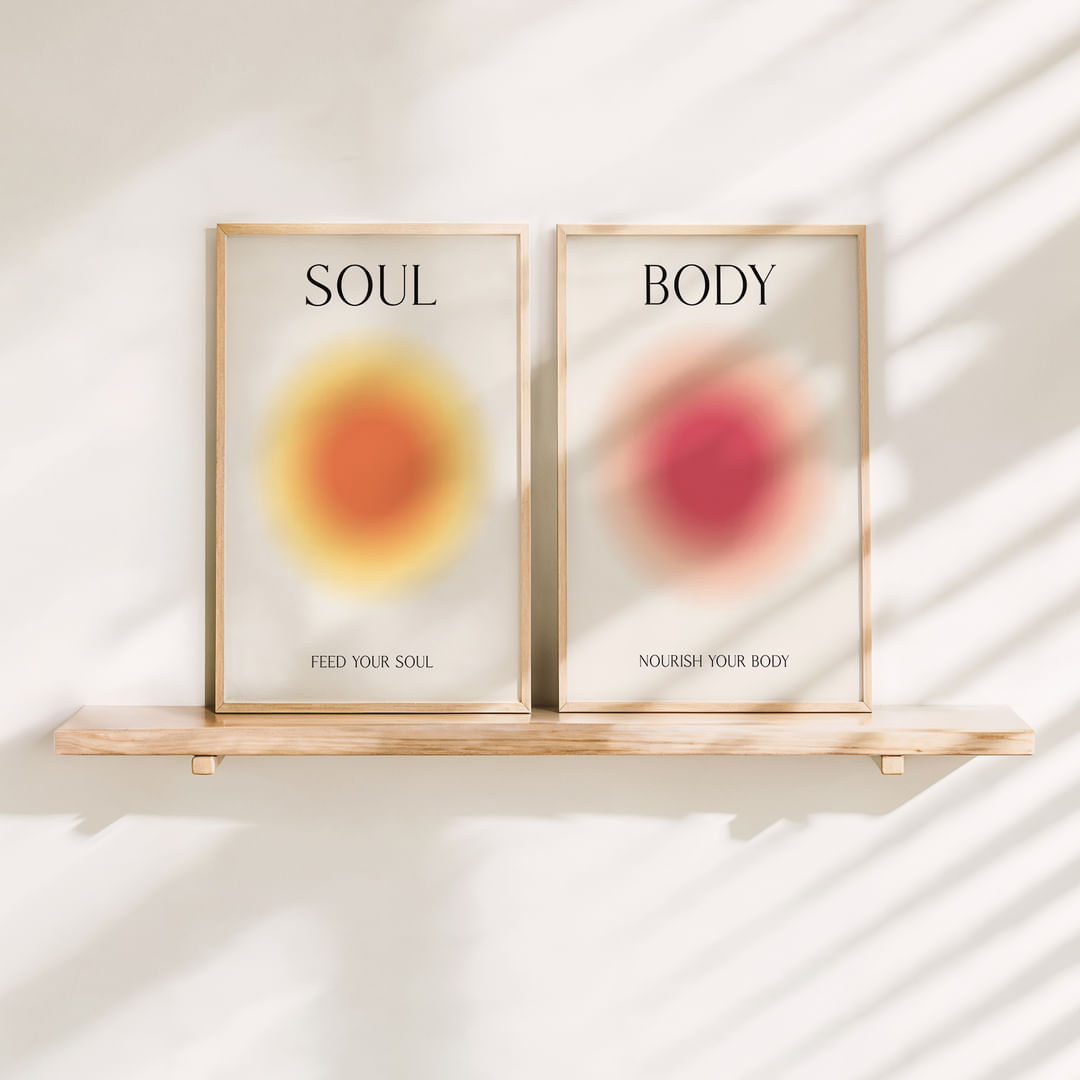Cette élégante œuvre d'art mural crée une atmosphère d'harmonie et de sérénité grâce à de douces transitions de couleurs et à de subtils contrastes. Les tons chauds des tableaux se complètent et forment une unité qui unit le corps et l'âme. Cette composition sophistiquée apporte profondeur et dynamisme à la pièce, tout en sublimant l'atmosphère par un sentiment d'équilibre artistique et de paix intérieure.